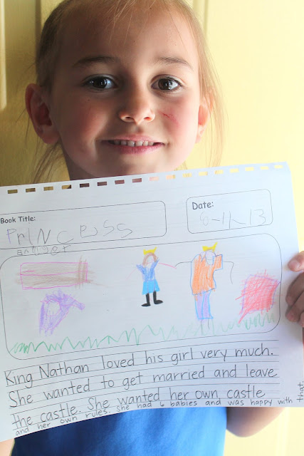 The kids worked on their summer books, and Bridget asked me to write hers down this time. She has been writing them and I will write the correct word under what she has sounded out.